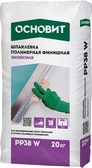Шпаклевка ОСНОВИТ ЭЛИСИЛК PP37 W предназначена для окончательного выравнивания стен и потолков в сухих и влажных помещениях.